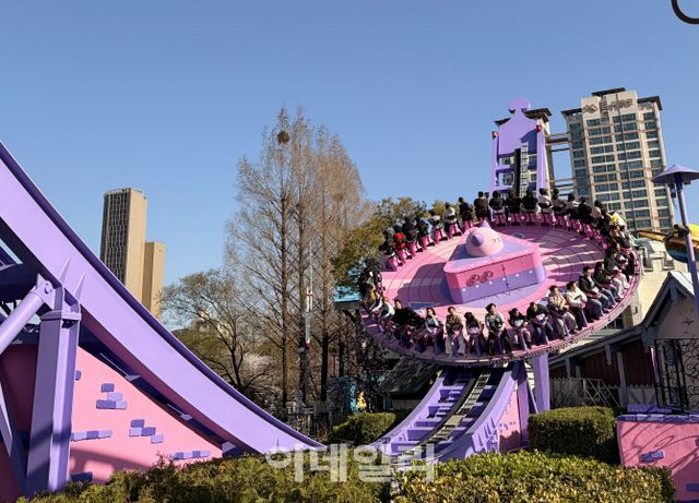 기존 어트랙션 ‘자이로스핀’도 탈바꿈했다. 직경 10m 원판을 핑크빈과 레코드판 콘셉트로 통째로 갈아입혔다. 360도 회전에 함성이 쏟아지고, 핑크빈 캐릭터 표정이 회전 방향에 따라 달라지는 세밀함도 녹여냈다.
