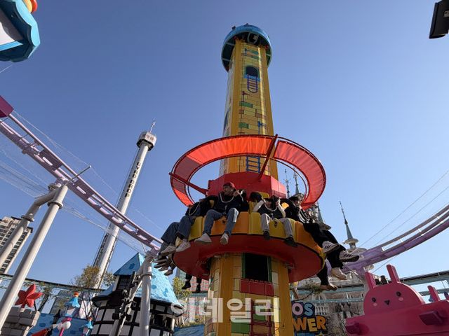 드롭형 어트랙션 ‘에오스타워’는 장난감 왕국 ‘루디브리엄’의 에오스 탑을 현실에 세웠다. 약 12m 높이를 빙글빙글 돌며 오르내리기를 다섯 차례 반복하는 구조다. 꼭대기에 보스 몬스터 ‘핑크빈’이 버티고 앉아 게임 속 보스전 분위기를 자아낸다. 자유낙하형 어트랙션에 선뜻 오르지 못하는 이에게 입문용으로 제격이다.