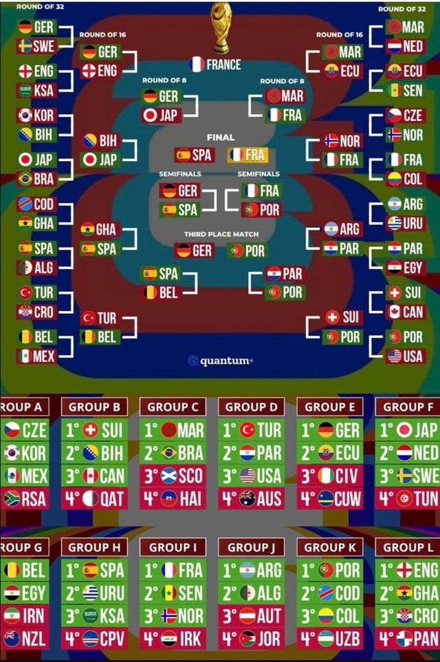 '퀀텀'은 북중미 월드컵 조별리그 A조에서 체코와 한국이 나란히 조 1, 2위를 차지해 토너먼트 진출권을 확정 지을 것으로 예상됐다. 개최국 멕시코도 3위에 올랐지만 32강 진출에 성공할 것으로 전망했다.