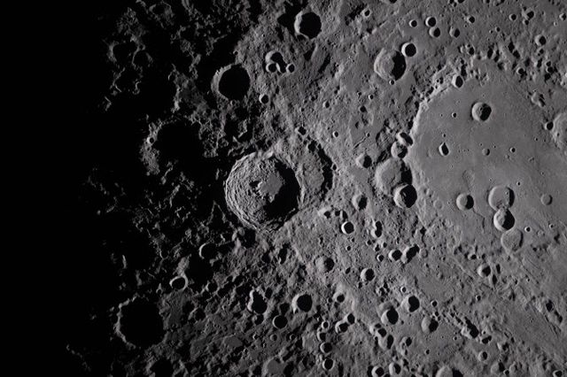 | 달의 낮과 밤의 경계인 명암 경계선을 따라 달 표면 일부를 촬영한 모습. 낮은 각도의 햇빛이 표면에 길고 극적인 그림자를 드리우고 있다.(사진=NASA) |