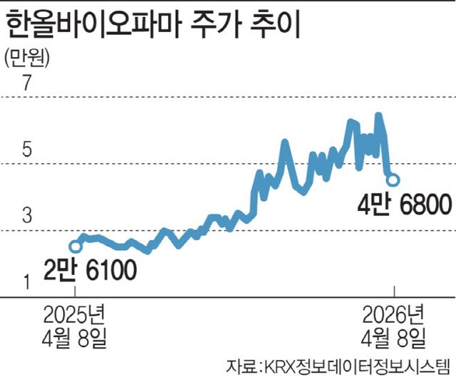 회사는 지난 2일 자가면역질환 치료 항체 신약인 ‘바토클리맙’이 갑상선 안병증(Thyroid Eye Disease·TED) 임상 3상에서 유효성 입증에 실패했다고 밝혔다. 바토클리맙은 한올바이오파마가 지난 2017년 미국 파트너스 ‘이뮤노반트’에 기술이전한 물질이다. 공시 이튿날 한올바이오파마 주가는 전일 대비 12.87% 급락했다.