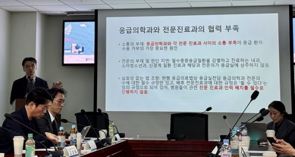 이날 학회는 응급실 뺑뺑이의 주요 원인으로 ▲응급의학과와 배후 전문진료과 간 소통 부족 ▲뇌졸중 등 필수중증응급질환을 담당할 전문의의 응급실 부재 ▲배후진료과 인력 배치가 의무가 아닌 현행 제도의 한계 등을 꼽았다.