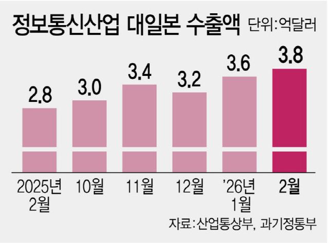 이 같은 흐름은 통계로도 확인된다. 올해 2월 ICT 대일 수출은 3억8000만 달러로 전년 대비 37.3% 증가했고, 무역 적자도 빠르게 축소되는 추세다. 정보통신기술(ICT) 서비스 수출 역시 아시아 시장을 중심으로 성장세를 이어가고 있다.