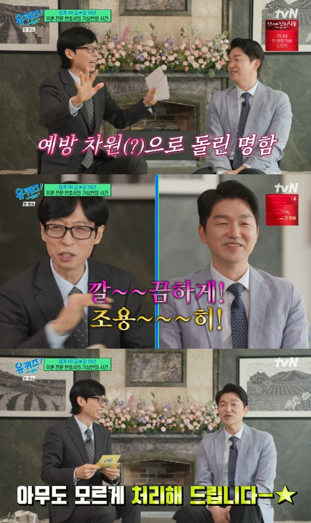 8일 방송된 tvN 예능 프로그램 '유 퀴즈 온 더 블럭'에서는 국내 1위 로펌의 이혼 전문 박민철 변호사가 출연해 이야기를 나눴다.