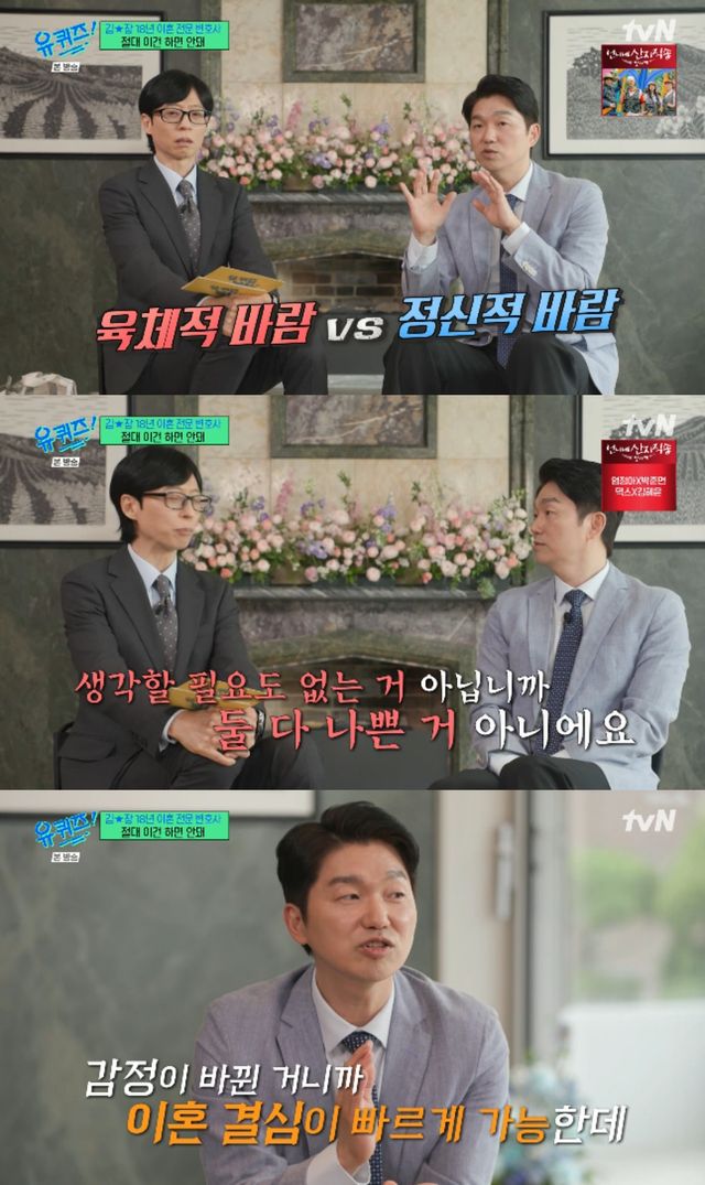 8일 방송된 tvN 예능 프로그램 '유 퀴즈 온 더 블럭'에서는 국내 1위 로펌의 이혼 전문 박민철 변호사가 출연해 이야기를 나눴다.