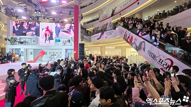 8일 오후 서울 영등포 타임스퀘어에서 영화 '악마는 프라다를 입는다2' 내한 레드카펫 행사가 진행됐다. 이날 행사에는 영화의 주역 메릴 스트립과 앤 해서웨이가 참석해 자리를 빛냈다. 두 사람은 완벽한 애티튜드와 아낌없는 팬서비스로 레드카펫을 수놓았다.