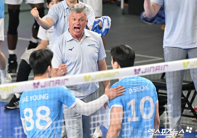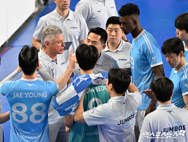 이날 김민재, 임재영, 곽승석 등을 선발로 내세운 것에 대해선 "김민재는 잘했다. 나쁘지 않았다. 서브로 많이 흔들었다"라며 "김규민을 교체로 넣은 건 좀 더 빠른 공격을 위해서였다"라고 설명했다.