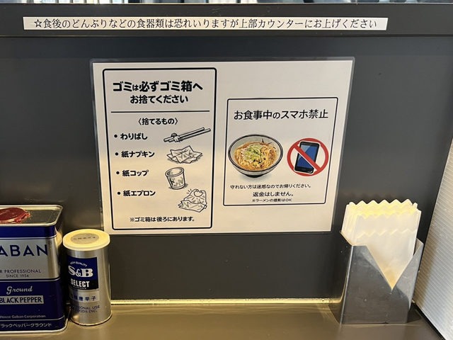 주인 카와다 유이치 씨가 이런 결단을 내린 이유는 일부 손님의 비위생적인 행동 때문이다. 카와다 씨는 “여러 사람이 쓰는 공용 조미료 통 위에 자기 스마트폰을 얹어놓고 영상을 보며 먹는 손님들이 있었다”며 “양념 통을 개인 거치대처럼 쓰는 행태를 더는 참지 않겠다”고 밝혔다.