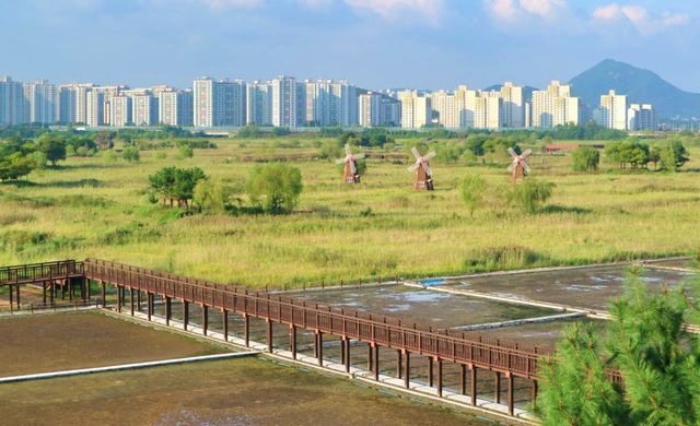 공원에 들어서면 가장 먼저 시야를 가득 채우는 것은 드넓은 갈대밭과 그 사이사이에 우뚝 솟은 풍차다. 이국적인 분위기를 자아내는 풍차는 이곳의 상징적인 존재로, 사계절 내내 사진가들과 나들이객들에게 사랑받는 장소다. 특히 해 질 녘 노을이 갈대 위로 내려앉을 때의 풍경은 마음을 차분하게 만드는 매력이 있다. 산책로를 따라 걷다 보면 칠면초처럼 소금기가 있는 땅에서 자라는 염생식물들이 대지를 붉게 물들인 모습을 볼 수 있는데, 이는 다른 공원에서는 쉽게 접하기 어려운 특별한 광경이다.