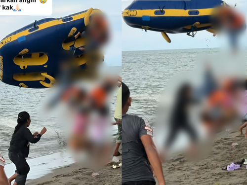 인도네시아의 한 해변에서 빠르게 질주하던 물놀이 기구가 백사장으로 돌진해, 탑승객들이 공중으로 튕겨 나가는 사고가 발생했다. 다행히 모두 생명에 지장은 없었지만 일부는 병원치료를 받아야 했다.
