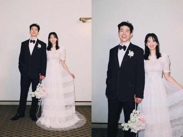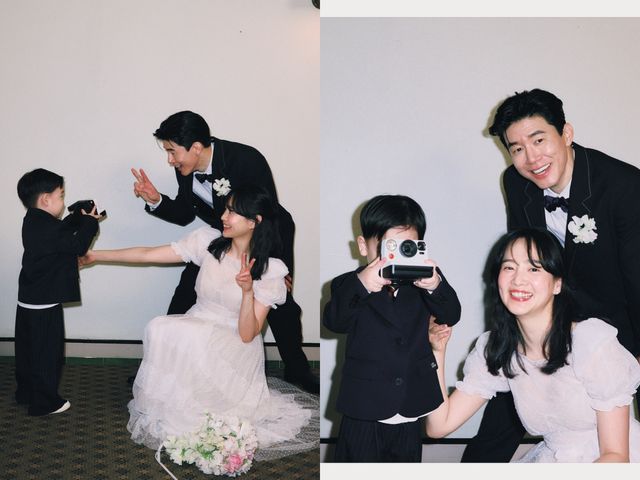 사진 속에는 결혼 11주년을 맞아 아들, 반려견들과 함께 기념사진을 찍은 김무열 윤승아 부부의 모습이 담겼다. 두 사람은 턱시도와 웨딩드레스부터 캐주얼한 복장까지 편안한 분위기 속에서 촬영을 진행했다.