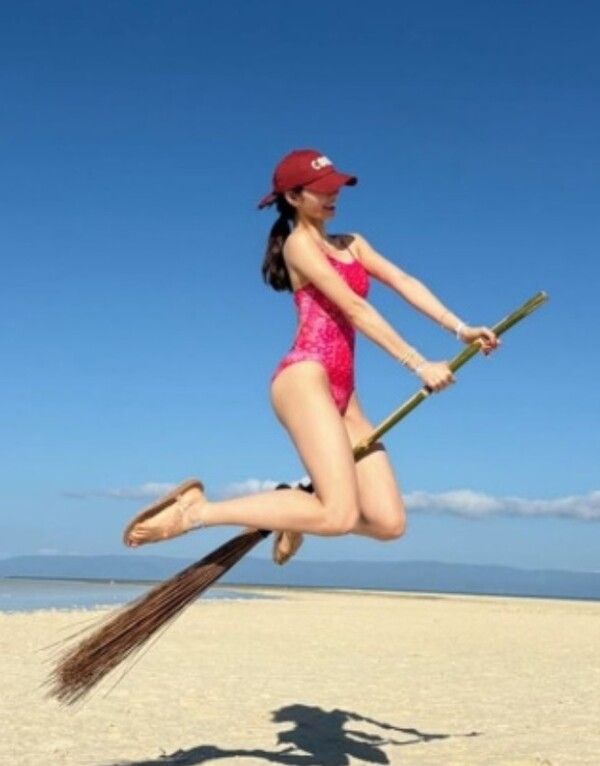 휴양지의 낭만을 즐기는 모습 외에도 한그루는 백사장에서 빗자루를 타고 공중으로 점프하는 익살스러운 포즈를 취하며 장난기 가득한 매력을 발산했다. 이혼 후 두 아이를 홀로 키우는 일상 속에서 모처럼 찾은 여유와 유쾌한 에너지가 사진을 통해 고스란히 전달된다.