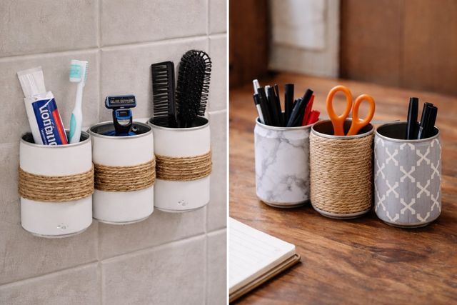 또한 화장실에서도 활용할 수 있다. 캔의 윗부분을 매끄럽게 잘라내고 밑바닥에 배수 구멍을 뚫으면 칫솔, 치약, 면도기 등을 보관하는 홀더가 된다. 특히 콜라캔 3~4개를 나란히 붙여 벽면에 고정하면 빗이나 헤어핀 같은 작은 미용 도구들을 종류별로 분류할 수 있다. 캔 겉면에 욕실 인테리어와 어울리는 방수 시트지나 마끈을 두르면 시중에서 파는 고급 소품 부럽지 않은 디자인을 완성할 수 있다.
