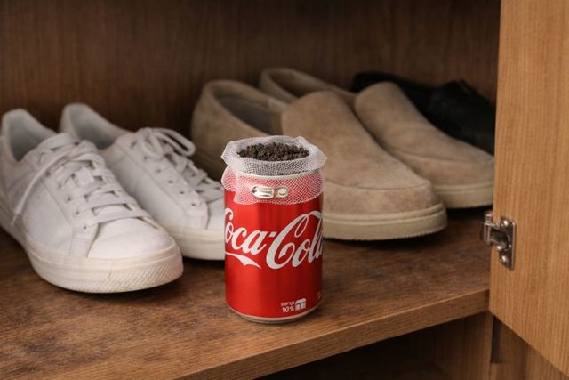 콜라 캔은 신발장이나 옷장의 불쾌한 냄새를 잡는 용기로도 변신한다. 캔의 상단을 제거하고 내부에 베이킹소다나 커피 찌꺼기를 채운 뒤 세탁망 조각으로 입구를 막아 신발장 구석에 두자.