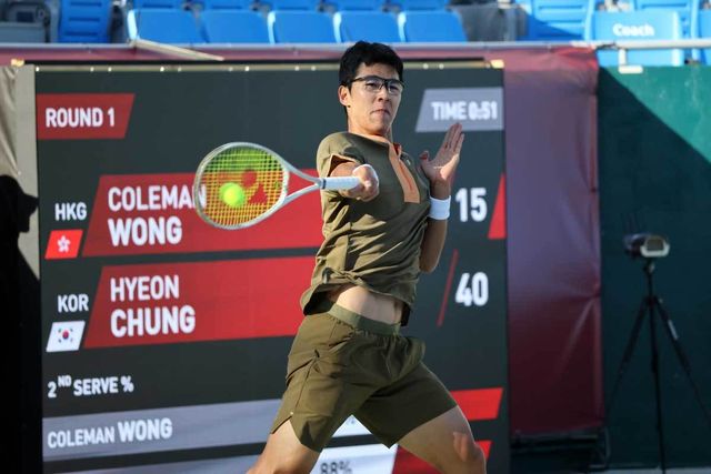 테니스가 수명 늘려주는 운동 1위로 알려졌다. 해당 사진은 정현이 지난해 10월 서울 송파구 올림픽공원 테니스코트에서 열린 유진투자증권 서울오픈 국제 남자 챌린저 테니스대회 남자 단식 32강전 콜맨 윙(홍콩)과 경기를 하고 있다. / 뉴스1