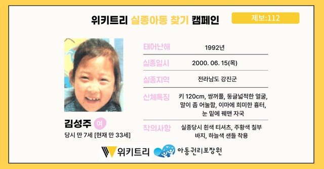 실종아동 김성주 / 위키트리, 사진제공: 아동권리보장