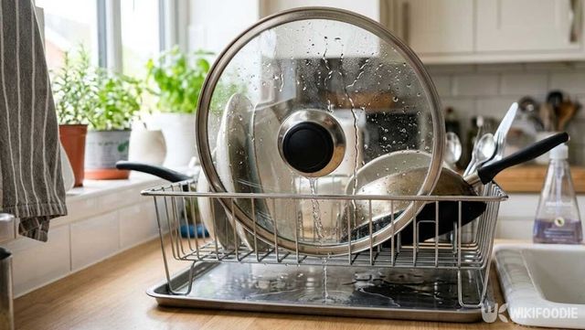 헹굼이 끝난 뚜껑은 엎어두지 말고 세워서 보관해야 틈새 사이에 수분이 고이지 않고 공기가 충분히 통한다. 엎어두면 유리 아랫면과 금속 테두리 사이에 물기가 갇혀 마르는 데 훨씬 오래 걸린다. 물기가 남아 있는 상태로 오랜 시간 두면 세균이 다시 번식하거나 냄새와 곰팡이가 생기기 쉽다. 건조대에 세워두거나 마른 천으로 틈새까지 꼼꼼히 닦아낸 뒤 통풍이 잘 되는 곳에 두는 것이 가장 좋다.
