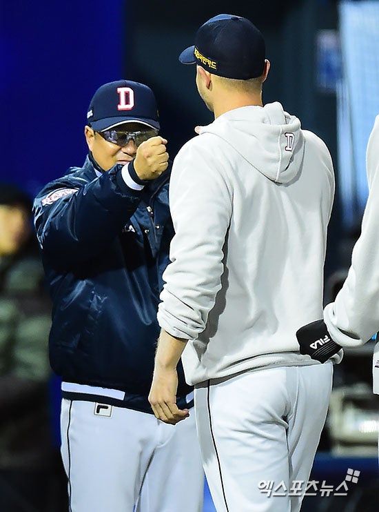 김 감독은 두산 시절인 2016년 한국시리즈 3차전에서 마이클 보우덴의 7⅔이닝 136구 무실점 투구를 언급했다. 이미 7회에 120구를 넘겼지만, 김 감독은 그대로 밀어붙였다. 당시 그는 "보우덴이 마운드에 있는 것 자체가 상대에게 압박이다"라고 했다.