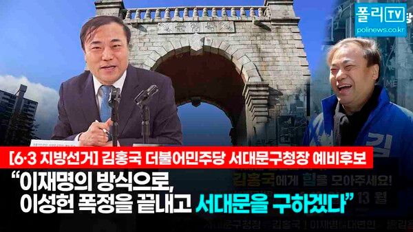 김홍국 예비후보는 9일 여의도 폴리뉴스 스튜디오에서 김능구 대표와 진행한 인터뷰를 통해 "서대문구는 현직 이성헌 구청장의 독단과 독선, 구의회와의 전쟁으로 심각한 상황"이라며 "이재명 대통령의 경기도지사 시절 대변인부터 언론, 행정, 정치 현장을 두루 경험하며 체득한 결과 중심 행정으로 서대문을 바꾸겠다"고 밝혔다.