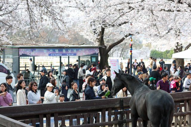 벚꽃과 말이 어우러진 이색적인 풍경은 물론, 인생샷 명소로 입소문을 타며 방문객들의 발길이 이어지고 있다. 4호선 경마공원역과 바로 연결된 뛰어난 접근성과 함께 인근에 미술관, 과학관, 대공원 등 다양한 문화, 여가 시설이 위치한 터 봄나들이 코스로도 제격이다.