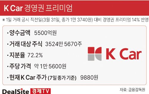 주주들이 더 민감하게 반응하는 지점은 '가격'이다. 케이카 인수가는 주당 약 1만5600원으로, 인수 발표 직전 대비 약 14%의 경영권 프리미엄이 반영됐다. 실적 둔화 국면에서 프리미엄까지 얹어 인수에 나선 점은 부담 요인으로 지적된다.