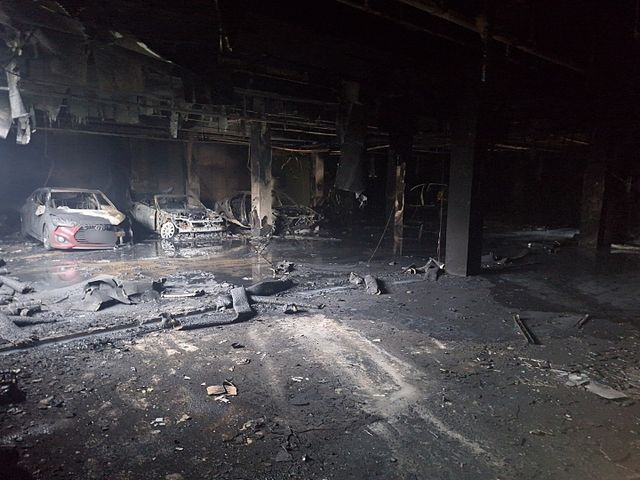 화재는 지하주차장 내 차량에서 시작한 것으로 추정된다. 이 화재로 차량 4대와 오토바이 2대 등이 전소됐다.