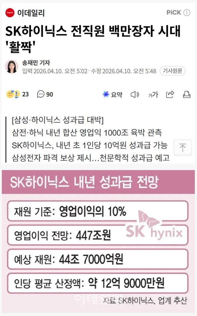 SK하이닉스 전직원 백만장자 시대 '활짝'