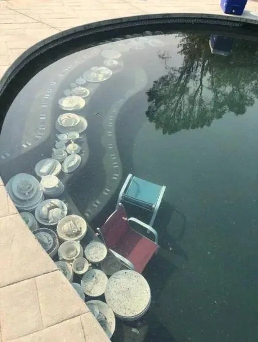 고급 식기 세트 5개를 수영장에 담궈 놓고 대피했다고 함