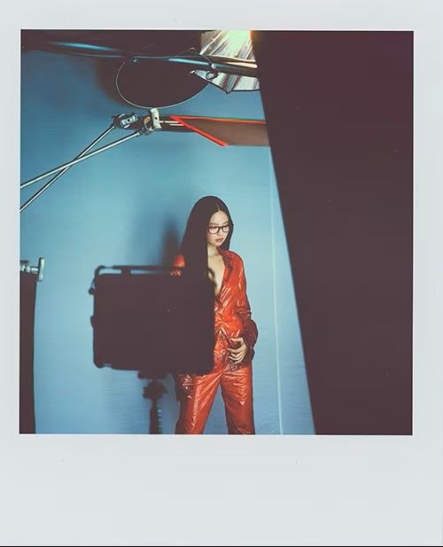 이와 함께 폴라로이드 이미지도 함께 공개됐는데요. 붉은 조명 아래 드러난 실루엣, 흐릿하게 번지는 그림자, 스튜디오 장비와 촬영 현장을 그대로 드러내며 메타적인 시선을 더합니다. 완성된 이미지 뒤에 존재하는 제작 과정까지 하나의 서사로 끌어들이는 방식이죠.
