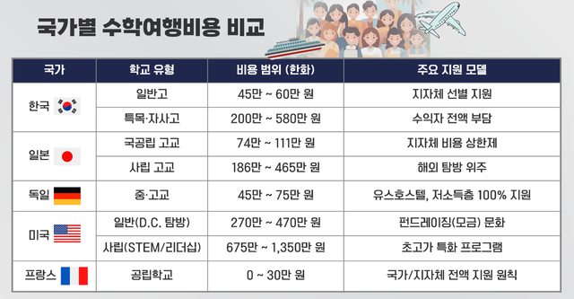 일본은 수학여행 비용 상한선, 프랑스는 숙박·교통비만, 미국은 학생들의 모금으로 충당