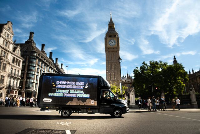 누룰 3년 전 명품 브랜드에 재생 에너지 사용을 요구하는 캠페인을 벌였어요. 많은 케이팝 아이돌이 명품 앰버서더로 나서고 있는 만큼, 팬덤의 이름으로 더 책임감 있는 기후 대응을 요구한 건데요. 파리 패션위크 기간에 전 세계 6개 도시에서 동시에 오프라인 액션을 펼쳤어요. 프랑스 파리, 미국 뉴욕, 영국 런던, 인도네시아 자카르타, 한국 서울, 일본 도쿄에서 LED 트럭 시위를 한 거예요. 케이팝 팬들이 많이 하는 것처럼요. 자카르타에서는 이런 형태의 시위가 흔치 않다 보니 트럭 업체가 계속 “이렇게 하는 게 맞아요?”라고 묻기도 했어요.(웃음)