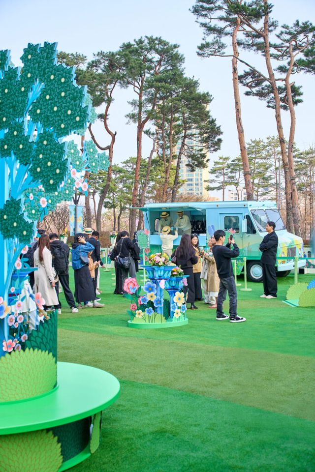 정원 곳곳에는 그네와 벤치, 중앙을 가로지르는 다리가 놓여 있어 관람객이 공간 속을 직접 걸으며 온전한 시간을 보낼 수 있습니다. 또한 주말마다 진행되는 워크숍에서는 봄의 감각을 보다 구체적으로 체험할 수 있는데요. 꽃으로 화관을 만들거나, 작은 정원을 직접 꾸미고 식물을 심는 과정을 통해 계절의 감각을 손끝으로 직접 느낄 수 있죠. 현장에서 제공되는 씨앗 카드와 봄을 모티프로 한 타투 스티커 역시, 지금 이 순간을 오래 간직하게 하는 특별한 경험을 제공합니다.