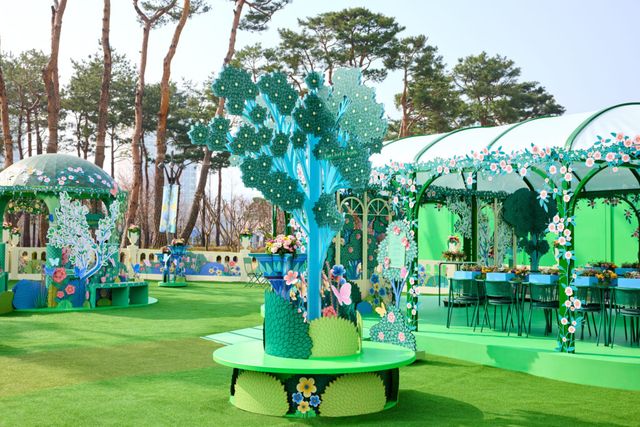 ‘스프링 이즈 블루밍’은 마치 동화 속 한 장면에 들어온 듯한 분위기를 자아냅니다. 나비와 새가 유영하듯 날아다니고, 만개한 꽃들 사이로 햇살이 스며드는 장면은 마치 한 폭의 일러스트가 현실로 옮겨진 듯한 인상을 남기죠. 이번 프로젝트는 프랑스 아티스트 샬롯 가스토(Charlotte Gastaut)가 함께했습니다. 그는 궁정 드레스의 실크 소재에서 영감을 받은 파스텔 톤과 섬세한 디테일을 통해 봄의 감각을 시각적으로 풀어내어 공간을 완성했는데요. 어린 시절 동화책을 넘기던 기억처럼, 보는 이의 감각을 깨우며 상상력을 자극하죠. 꽃과 동물, 그리고 장식적인 패턴이 어우러진 정원은 현실과 환상의 경계를 은은하게 흐리며, 봄의 서정적인 미학을 자연스럽게 드러냅니다.