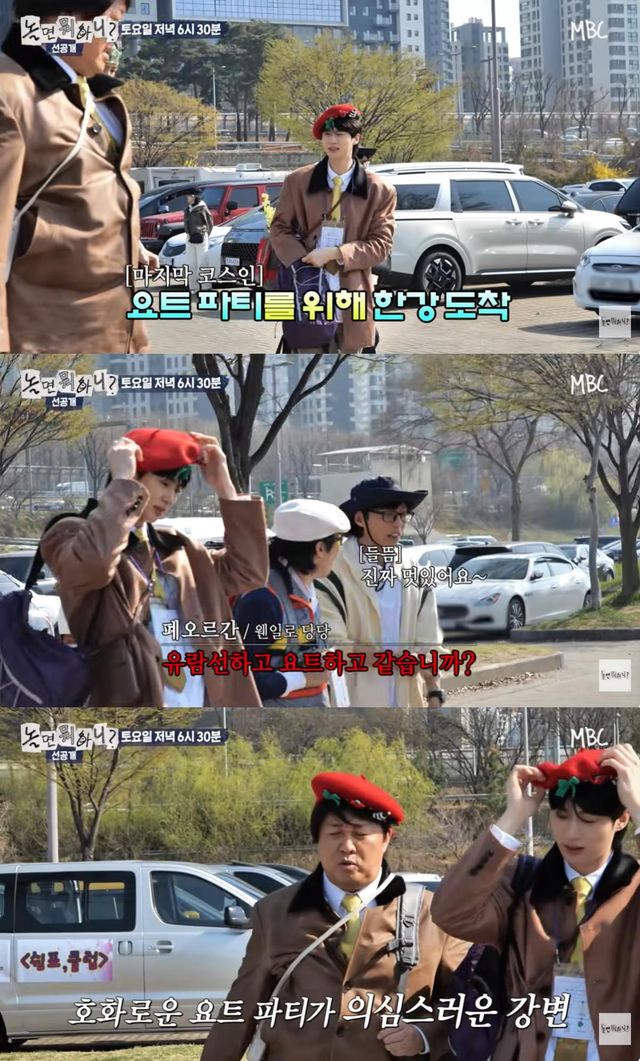 유재석은 "한강 좋다"며 좋은 날씨를 만끽했고 하하는 "솔직히 유람선 타고 요트라고 할 줄 알았는데"라며 요트 파티에 대한 기대를 표했다.