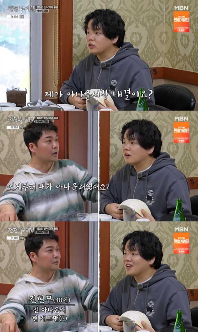 이에 곽튜브는 "저랑 아나운서랑 대결하는 거냐"며 두려움을 표했고, 전현무는 "언제부터 내가 아나운서였냐. 맨날 아나운서 아니고 개그맨이라고 하지 않나. 이럴 때만 아나운서냐"며 어이 없음을 표해 웃음을 안겼다.