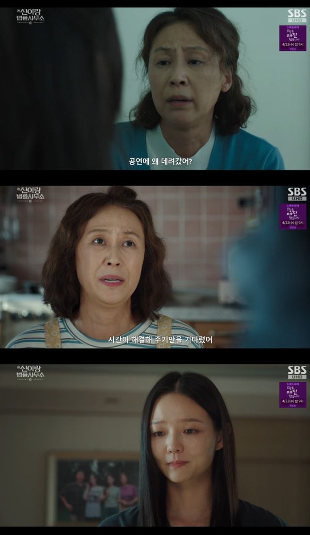 10일 방송된 SBS 금토드라마 '신이랑 법률사무소' 9회에서는 죽은 언니 한소현(황보름별 분) 덕분에 엄마와 마주앉은 한나현(이솜)의 모습이 그려졌다.
