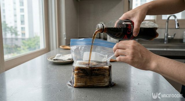 본격적인 청소를 시작하기 전, 먼저 마른 물티슈를 준비해야 한다. 수분이 날아가 빳빳해진 물티슈를 뭉치지 않게 잘 펼친 뒤, 지퍼백이나 밀폐가 가능한 용기에 차곡차곡 담는다. 그 위에 김빠진 콜라를 자작하게 붓는다. 콜라의 양은 티슈 전체가 흠뻑 젖을 정도면 충분하다. 용기 뚜껑을 닫고 약 5분 정도 기다리면, 콜라가 섬유 사이사이에 스며들어 물티슈가 금세 부드럽고 촉촉해진다.