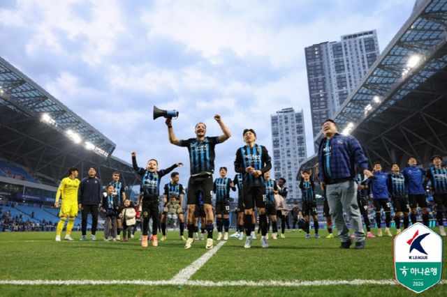 인천은 지난 5일 인천축구전용경기장에서 열린 하나은행 K리그1 2026 6라운드 안방 경기에서 김천 상무를 2-1로 제압했다.