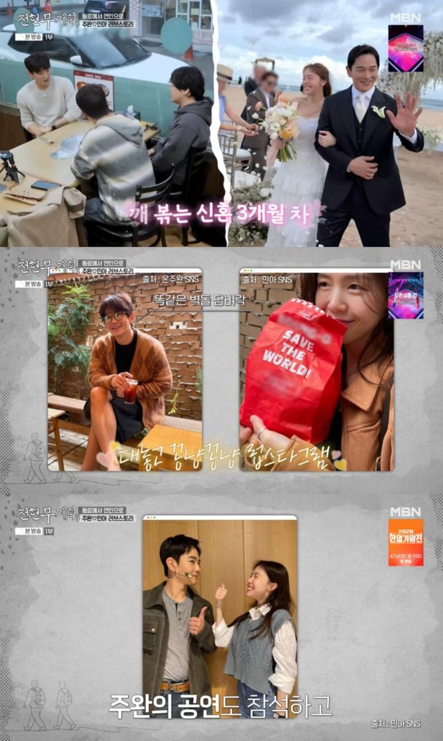 10살 연하 민아를 2016년 '미녀 공심이'에서 만난 후 2020년 뮤지컬 작품에서 다시 만났다는 온주완은 "저희는 딱히 비밀 연애 안 했다"며 '손 잡고 막 다녔냐'는 질문에도 고개를 끄덕이며 "아예 기사가 안 났다"고 밝혔다.