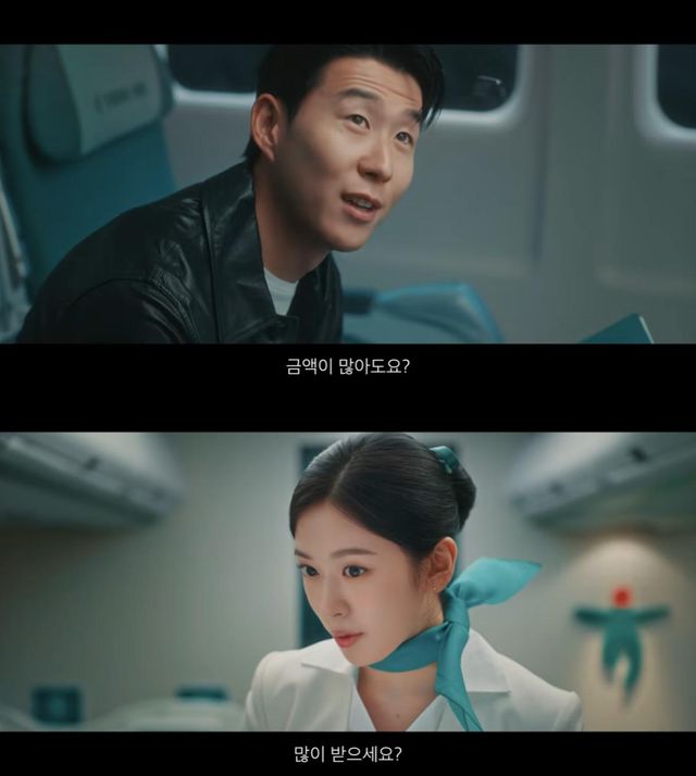 안유진은 손흥민의 금융상품 질문에 답하며 안내 연기를 펼쳤고, 손흥민은 "금액이 많아도요?"라고 질문했다.