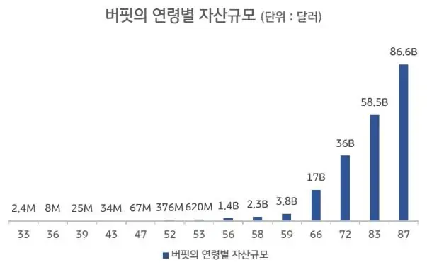 87세까지 복리로 지수적으로 증가하는 그의 재산...