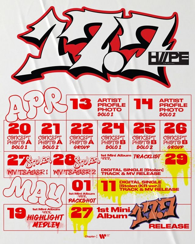 이번에 공개된 스케줄러 이미지는 앨범 타이틀 ‘17.7’을 중심으로 강렬한 인상을 남겼다. 레드, 블랙, 화이트 컬러가 감각적으로 어우러진 타이포그래피는 단번에 시선을 끌며, 스트릿 감성의 자유분방한 무드를 직관적으로 전달했다. 텍스트 디자인만으로도 하입프린세스가 지닌 당당한 에너지와 팀 정체성을 암시하며 데뷔 콘셉트에 대한 궁금증을 자극했다.