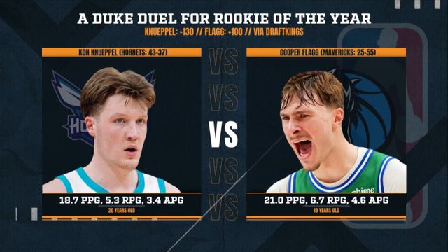 2025~26 NBA 신인왕 레이스에서 가장 눈길을 끄는 건 ‘듀크대 듀오’ 플래그와 크니플이다. 플래그는 정규리그 첫 68경기 출전해 평균 33분8초 동안 21.0점 6.7리바운드 4.6리바운드를 기록하며 성공적으로 리그에 안착했다. 크니플은 79경기 나서 평균 31분 5초 동안 18.7점 5.3리바운드 3.4어시스트로 맞선다. 경기당 3.4개의 3점슛을 터뜨리는데, 성공률이 무려 42.9%에 달하는 엘리트 슈터급 활약을 펼치고 있다. 시즌 초반엔 ‘전체 1순위’ 플래그의 신인왕 입상이 점쳐졌으나, 개막 뒤엔 해도 크니플이 플래그에 앞선다는 전망이 우세하기도 했다. 시즌 막바지까지도 두 선수의 경쟁은 치열하다.