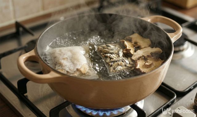6. 한 번 끓어오르면 불을 줄이고 된장의 농도를 살핀다.