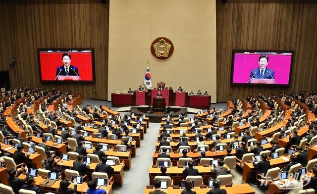 이재명 대통령이 2일 서울 여의도 국회 본회의장에서 중동 사태 대응 등을 위한 추가경정예산안에 대한 시정연설을 하고 있다. 사진=이수길 기자 Leo2004@newsway.co.kr