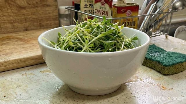 돌나물은 돌 틈에서 자라는 만큼 흙과 이물질이 많다. 찬물에 담가 두세 번 흔들어 씻은 뒤 체에 받쳐 물기를 충분히 뺀다. 이후 먹기 좋은 크기로 썰어준다.
