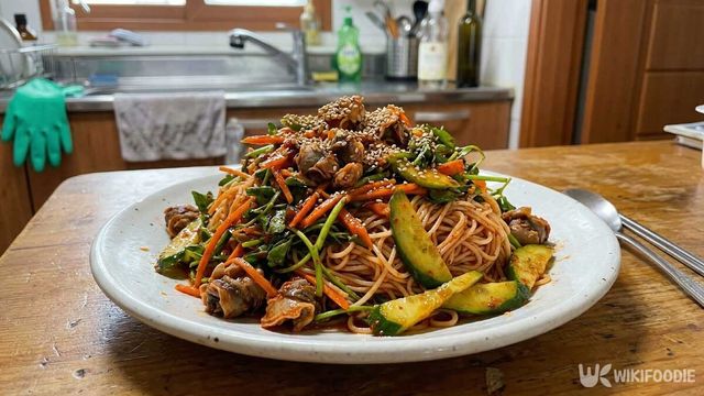 소면은 끓는 물에 삶은 뒤 찬물에 여러 번 헹궈 전분기를 제거하고 체에 받쳐둔다. 양파는 가늘게 채 썰어 찬물에 잠깐 담가 매운맛을 줄이고, 오이는 어슷하게, 당근은 가늘게 채 썬다. 청양고추는 송송 썰어 준비해둔다. 골뱅이는 통조림 국물을 완전히 따라낸 뒤 키친타월로 물기를 충분히 눌러 제거한다. 국물이 남으면 양념이 묽어지고 잡내가 날 수 있다.
