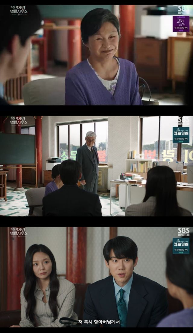이날 방송에서 신이랑과 친한 채소 가게 할머니 채정희(길해연)가 신이랑의 법률사무실을 찾아 "돌아가신 우리 영감 때문에 왔다"고 했다.