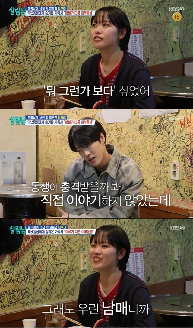 11일 방송된 KBS 2TV '살림하는 남자들 시즌2'에서는 타쿠야가 이부동생 나나와 속내를 터놓는 모습이 전파를 탔다.