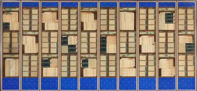 (사진은 정조의 책가도와 비슷했을 책으로 가득 찬 책가도)